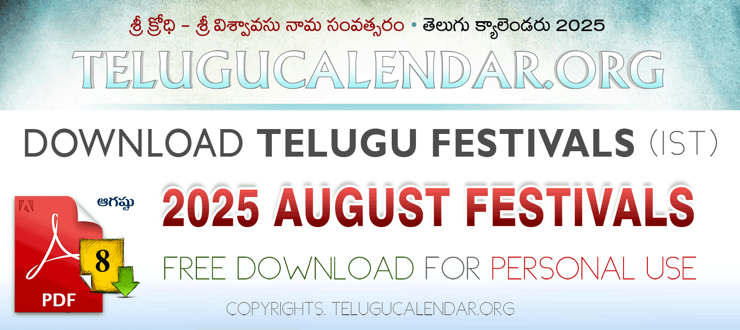 Telugu Festivals 2025 August (IST) in Telugu for Telugu States. Download 2025 Telugu Festivals August PDF for personal use