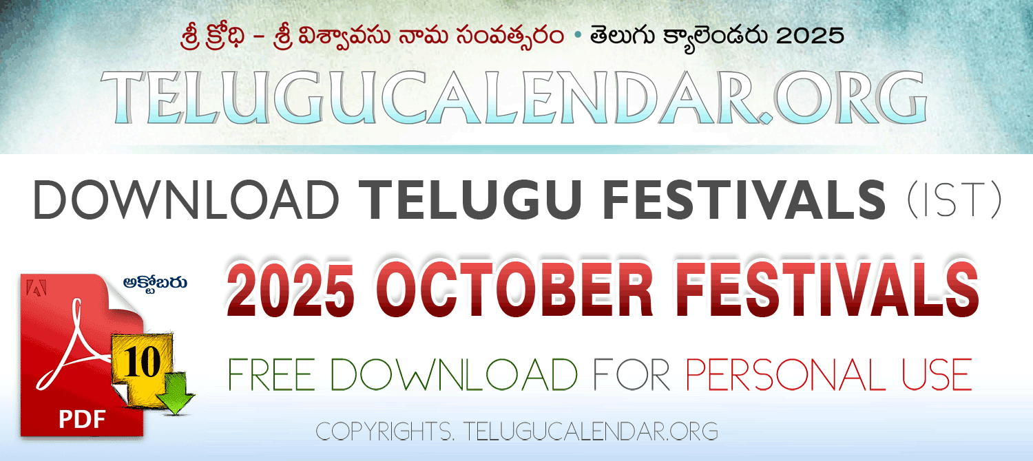 Telugu Festivals 2025 October (IST) in Telugu for Telugu States. Download 2025 Telugu Festivals October PDF for personal use