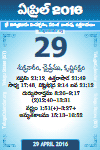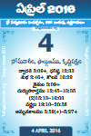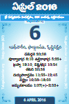 1 - Banks Holiday, 5 - Babu Jagjivan Ram Jayanti, Masa Sivaratri, 8 - Sri Durmukhi Nama Samvatsara Ugadi, Vasantha Navarathrulu Prarambham, 9 - Gauri Vratham, 11 - Sri Panchami, 13 - Surya Puja, Mesha Sankramanam, 14 - B.R.Ambedkar Jayanti, 15 - Sri Rama Navami, Bhadrachala Sri Rama Kalyanam, 17 - Kamada Ekadasi, Sarvepalli Radhakrishnan Vardhanti, 18 - Vamana Dwadasi, 19 - Mahavir Jayanti, 22 - Sri Hanuman Jayanti (North India, Telugu States May 31, 2016), 24 - Sathya Sai Baba Vardhanti, 25 - Sankatahara Chaturthi.