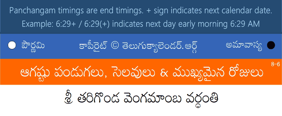 Telugu Panchangam for Telugu States (Andhra Pradesh & Telangana). Panchangam showing information about the 5 attributes of the day, viz., Nakshatram, Tithi, Varam, Yogam and Karanam along with end timings. Telugu Subha Muhurthalu, Auspicious Period (Today Good Timings like Abhijit Muhurtham, Amruta Kalam, Godhuli Muhurtham & Brahmi Muhurtham) and Inauspicious Period (Bad Timings like Rahukalam, Gulika kalam, Yamaganda kalam, Durmuhurtham & Varjyam) with starting and end timings.