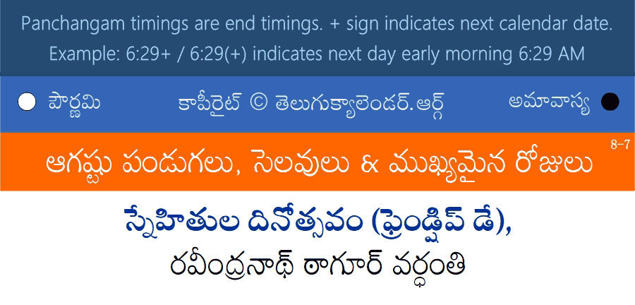 August 7, 2022 Panchangam Telugu Calendar Daily with Festivals, Subha Saaugustalu and Asubha Saaugustalu Timings.