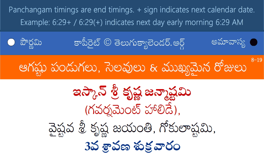 August 19, 2022 Panchangam Telugu Calendar Daily with Festivals, Subha Saaugustalu and Asubha Saaugustalu Timings.