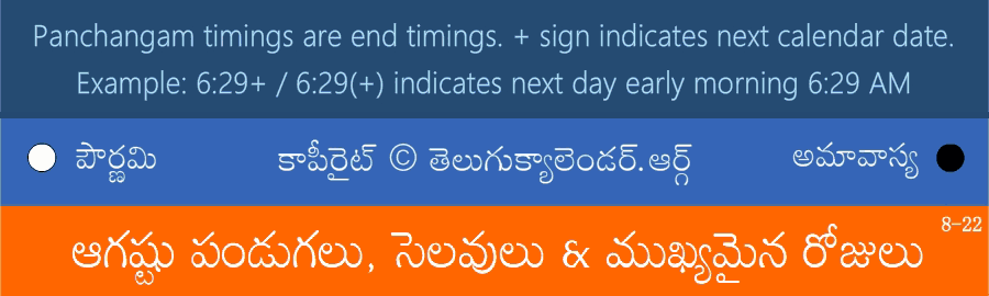 August 22, 2022 Panchangam Telugu Calendar Daily with Festivals, Subha Saaugustalu and Asubha Saaugustalu Timings.