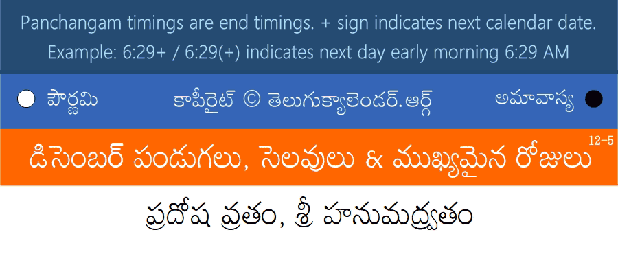 December 5, 2022 Panchangam Telugu Calendar Daily with Festivals, Subha Sadecemberalu and Asubha Sadecemberalu Timings.