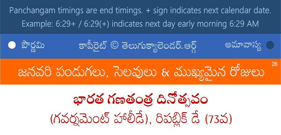 January 26, 2022 Panchangam Telugu Calendar Daily. Sri Plava Nama Samvatsaram, Uttarayanam, Hemantha Rutuvu, Pushya Masam, Krishna Paksham.