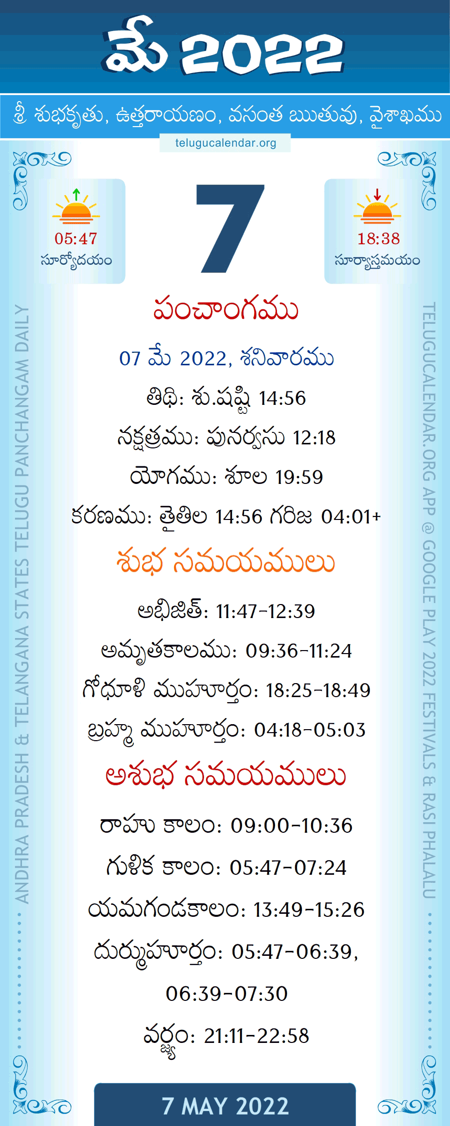May 7, 2022 Subha MuhurthamToday's Telugu Panchangam for Telugu States.