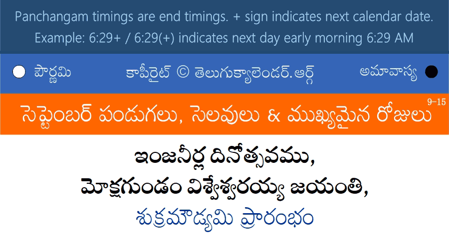 September 15, 2022 Panchangam Telugu Calendar Daily with Festivals, Subha Samayalu and Asubha Samayalu Timings.