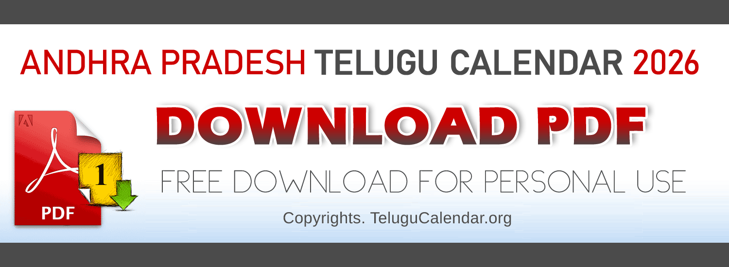 Digital copy of Telugu Calendar 2026 April Free PDF (Andhra Pradesh) with Telugu Festivals and Holidays (IST) in Telugu Language. Click here to Download PDF for personal use.
