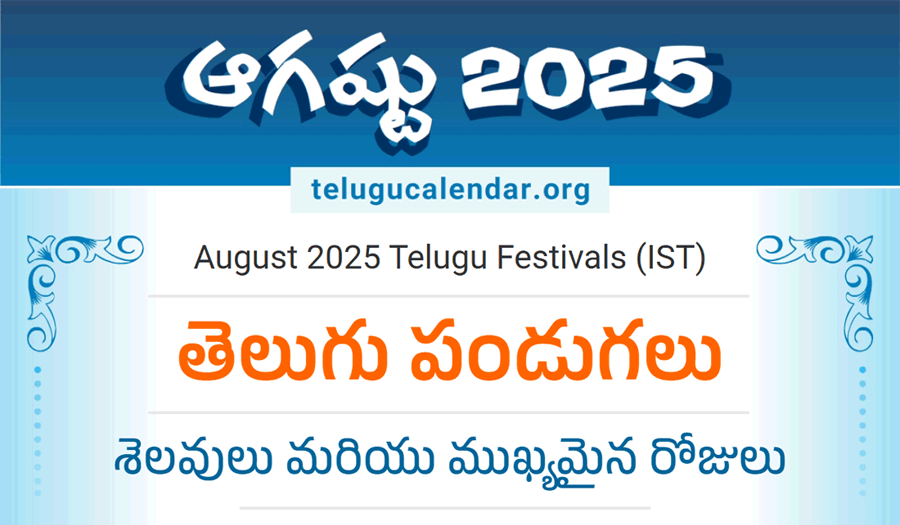 August 2025 Telugu Pandugalu & Selavulu PDF in Telugu for Telugu States.