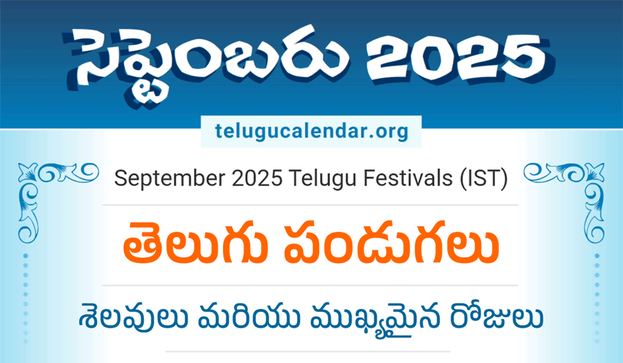 September 2025 Telugu Pandugalu & Selavulu PDF in Telugu for Telugu States.