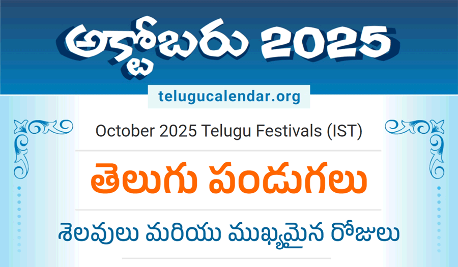 October 2025 Telugu Pandugalu & Selavulu PDF in Telugu for Telugu States.